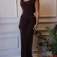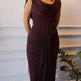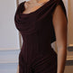 Brown Swoosh Collar Sleeveless Maxi Dress