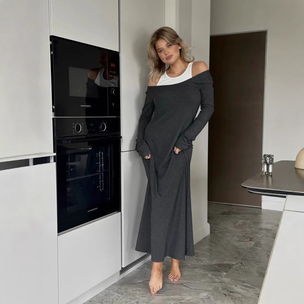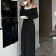 New Long Sleeve Stitching Fake Two-piece Vest Temperament Dress