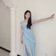 Rüschen Oberschenkel Hoch geteilte Kleid Frauen charmante Spaghetti -Gurt quadratische Hals Rückenless Hosentender Kleider für Abendpartykleidung