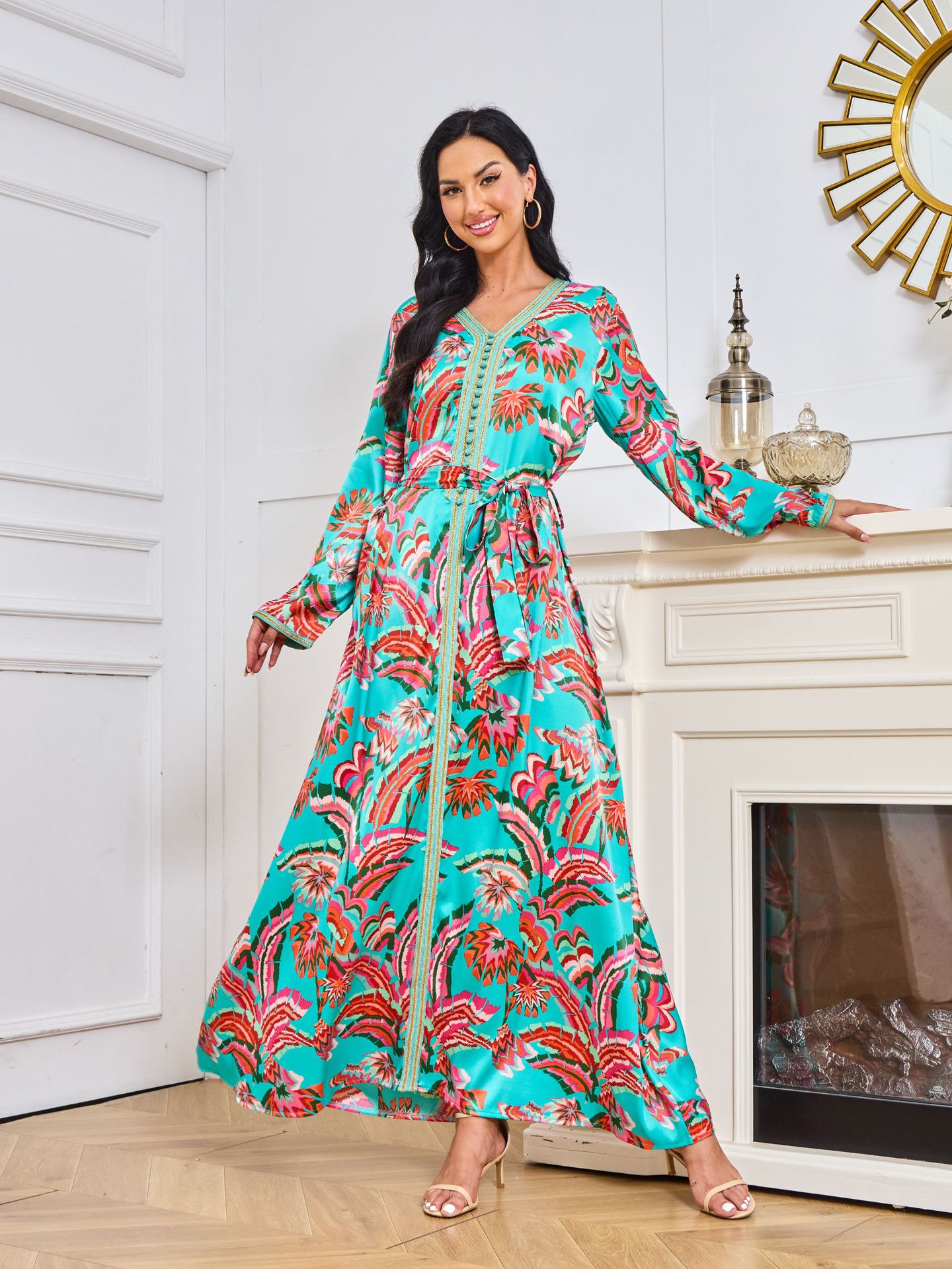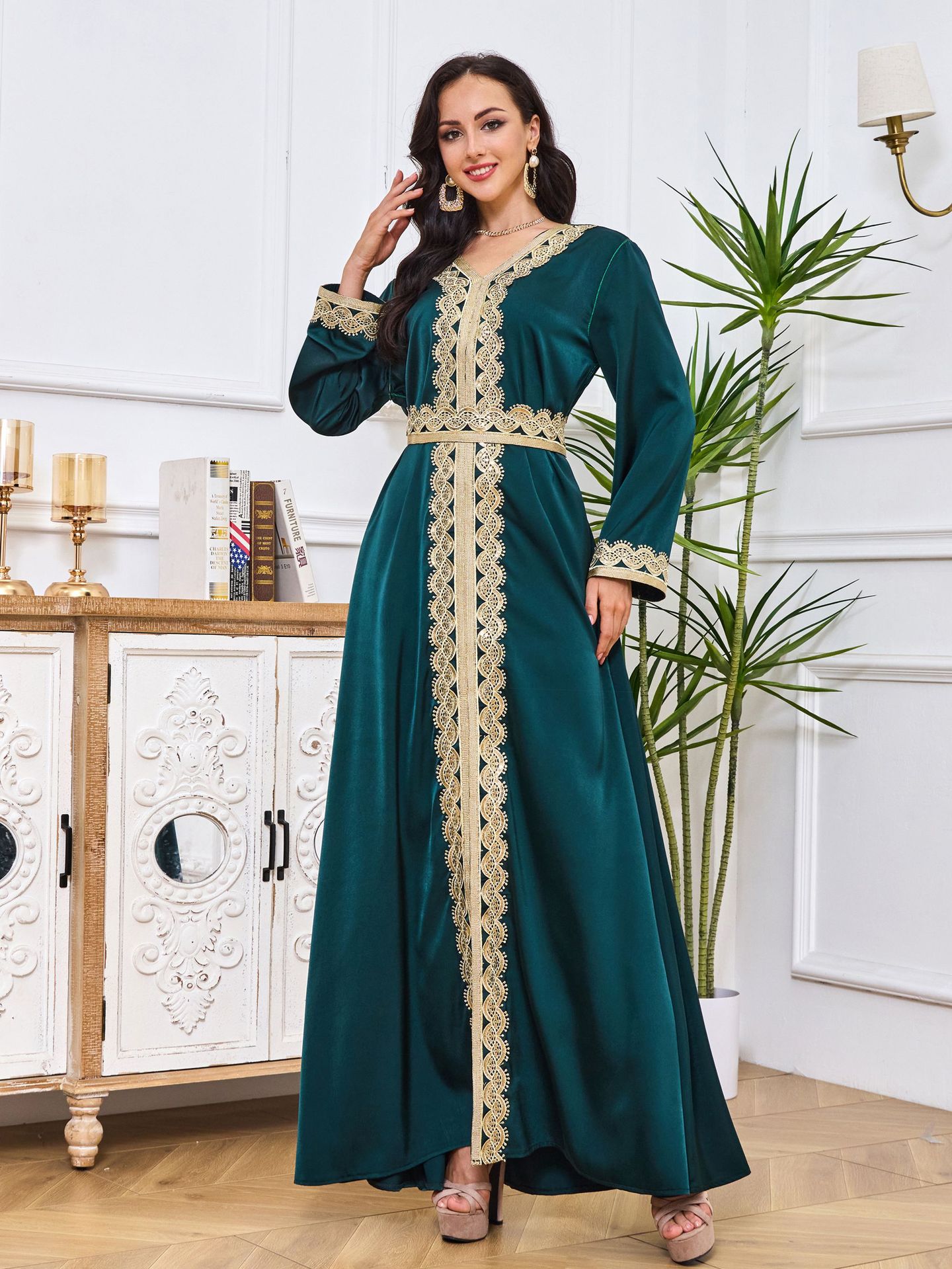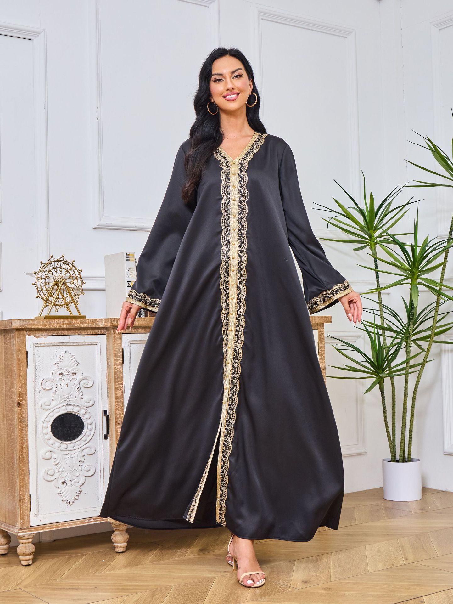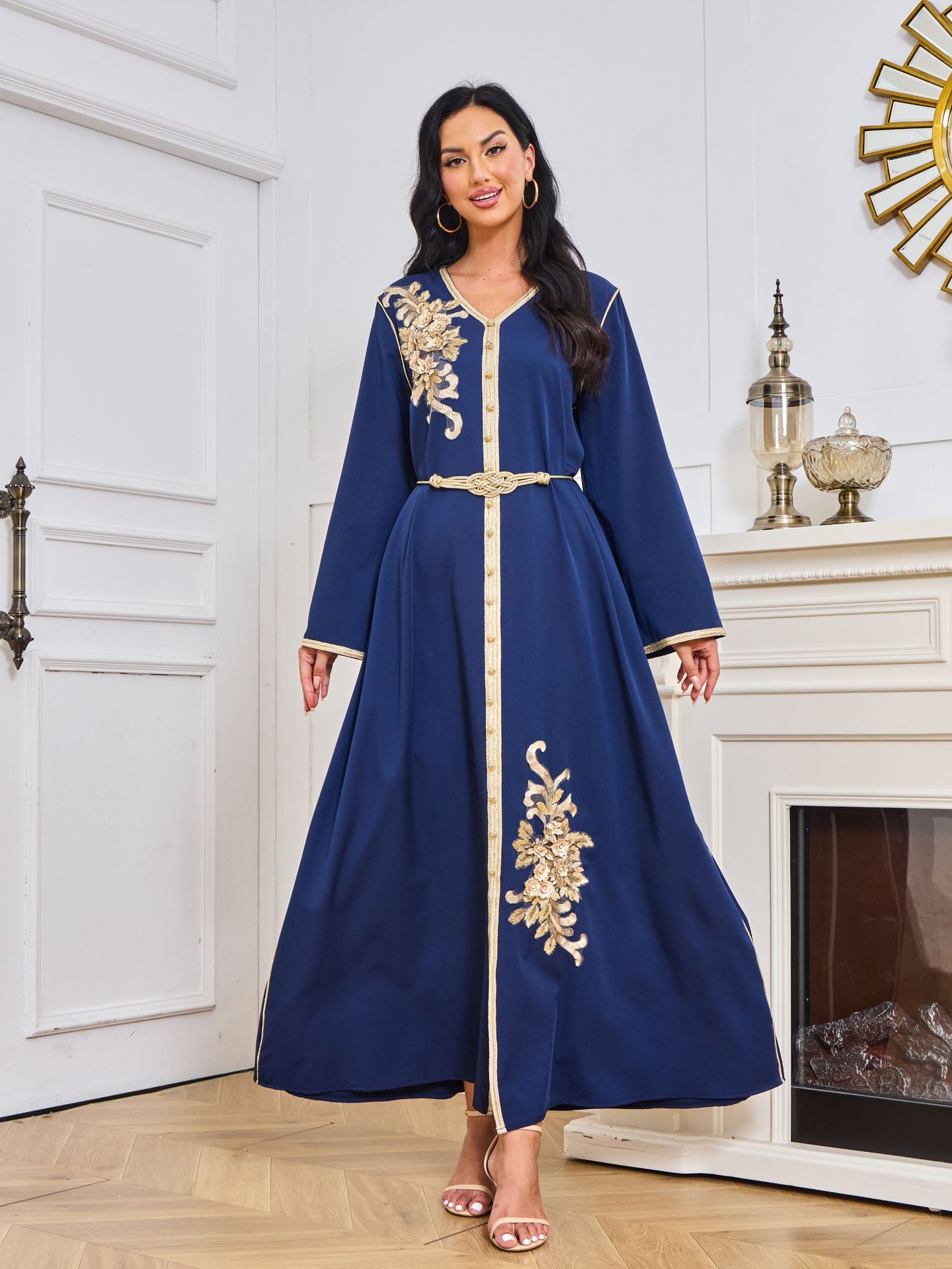 Robe Abaya de Dubaï avec Pierres Chaudes Imprimées et Détails Brodés