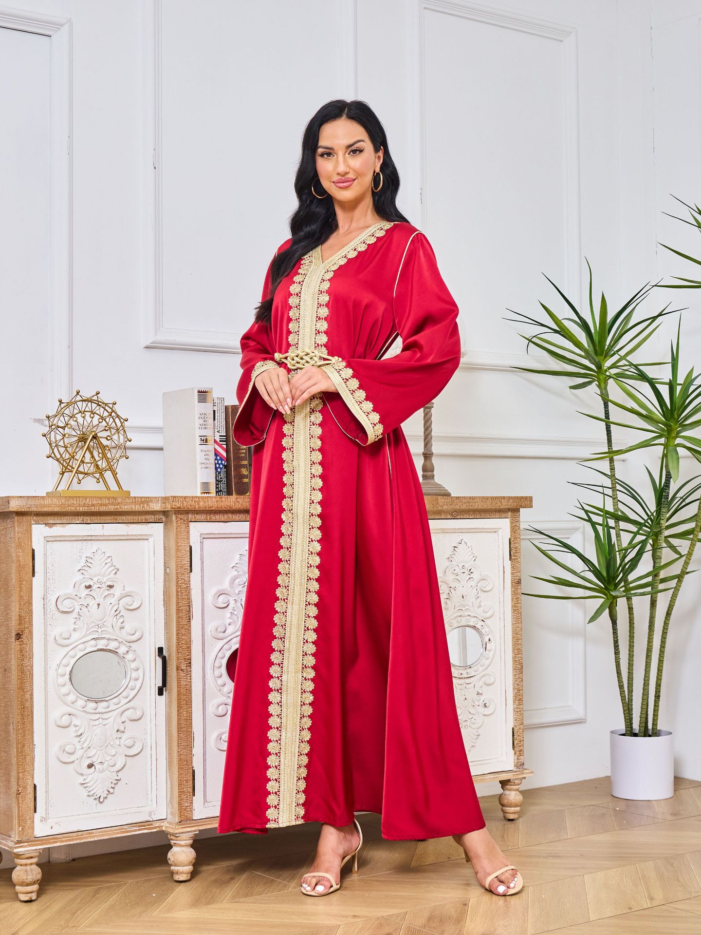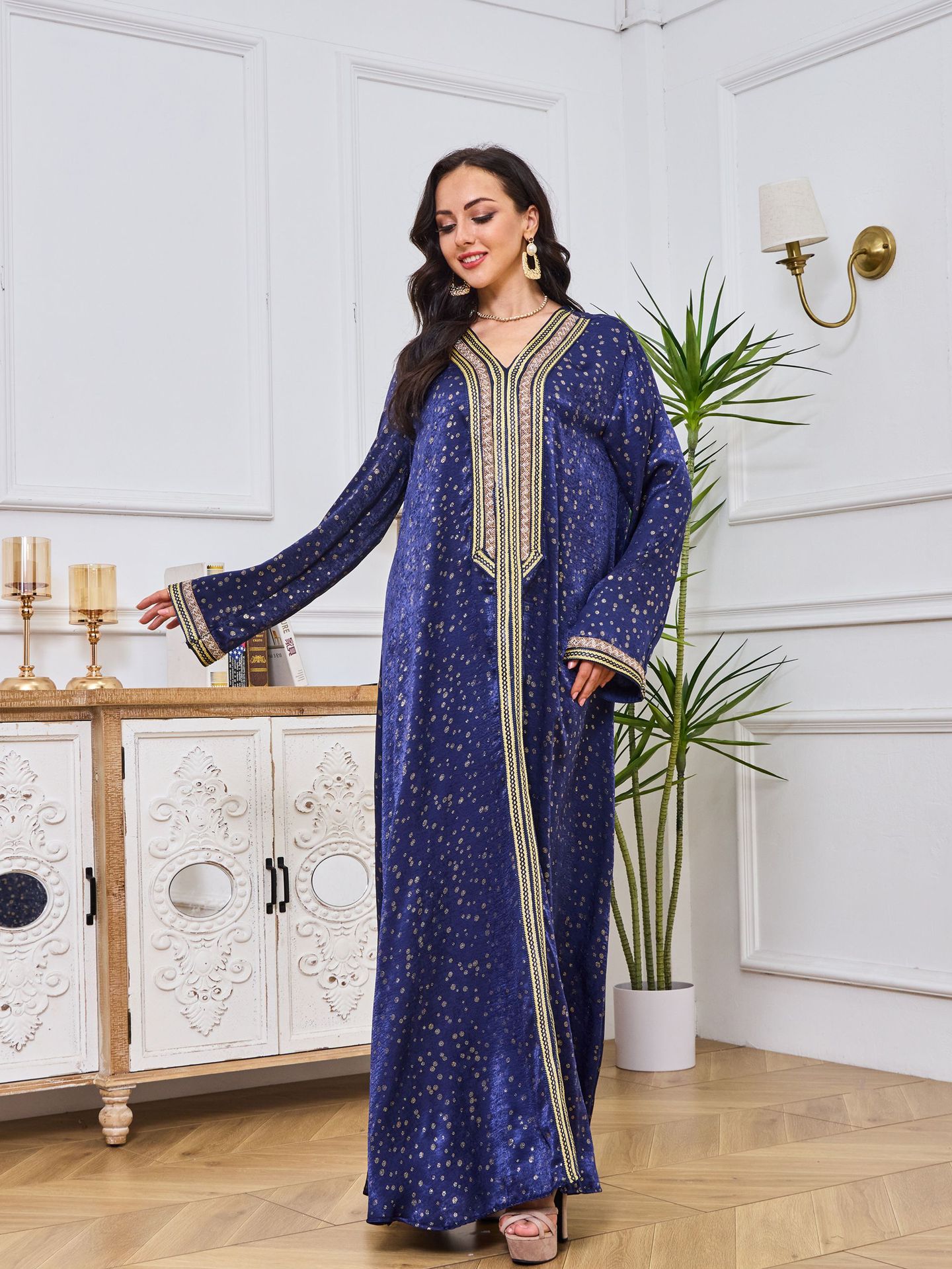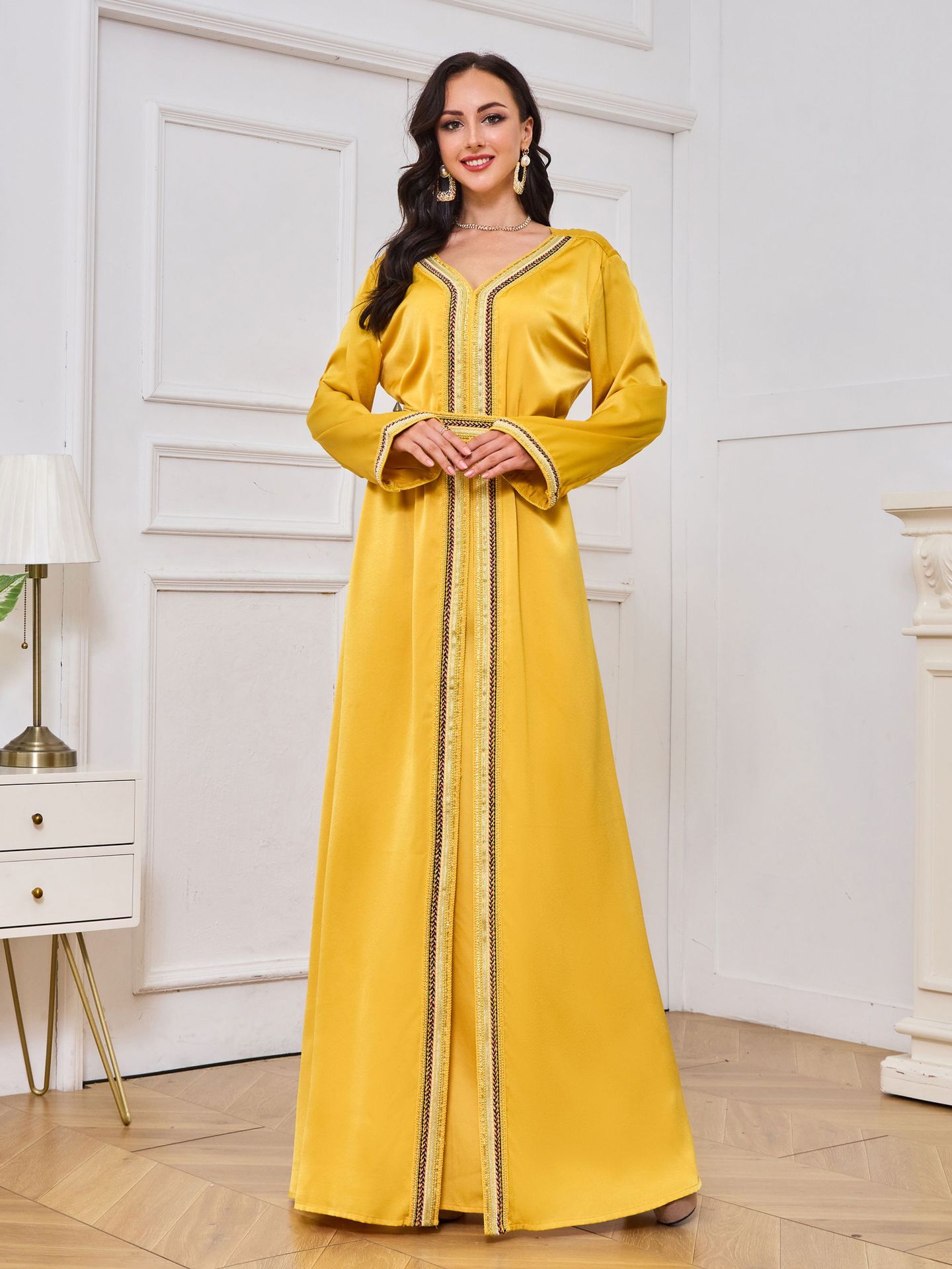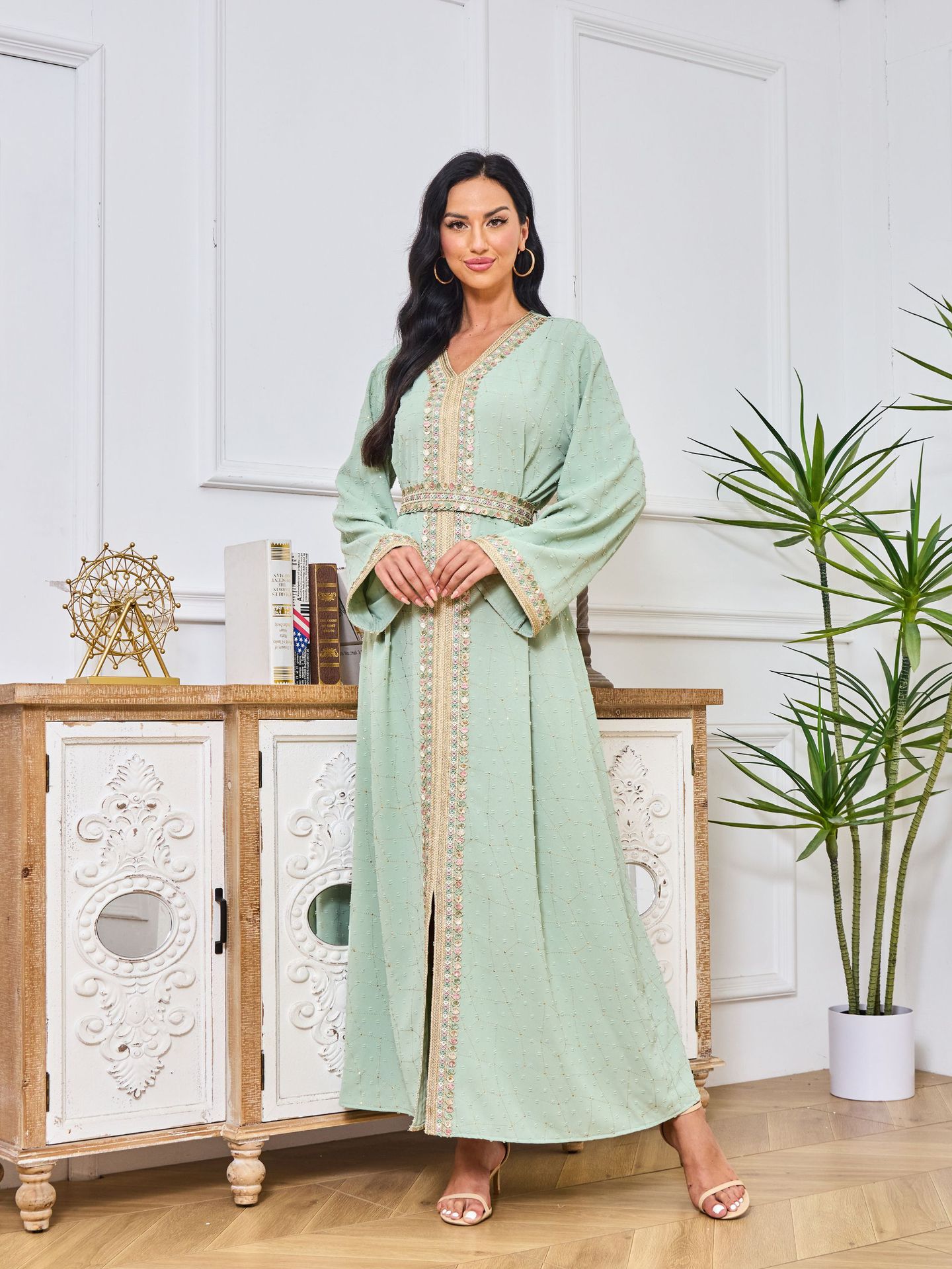 Robe Abaya de Dubaï avec Pierres Chaudes Imprimées et Détails Brodés