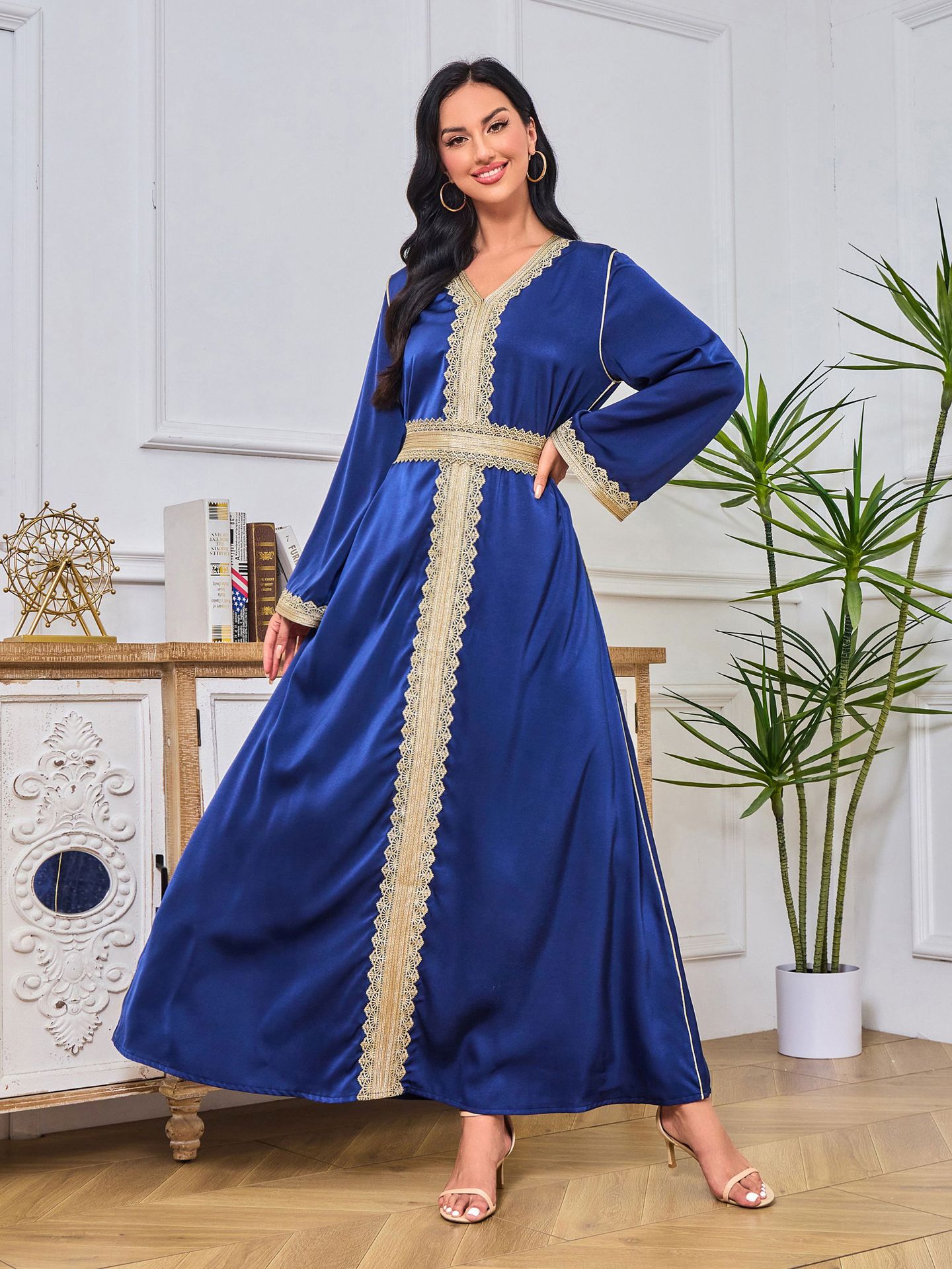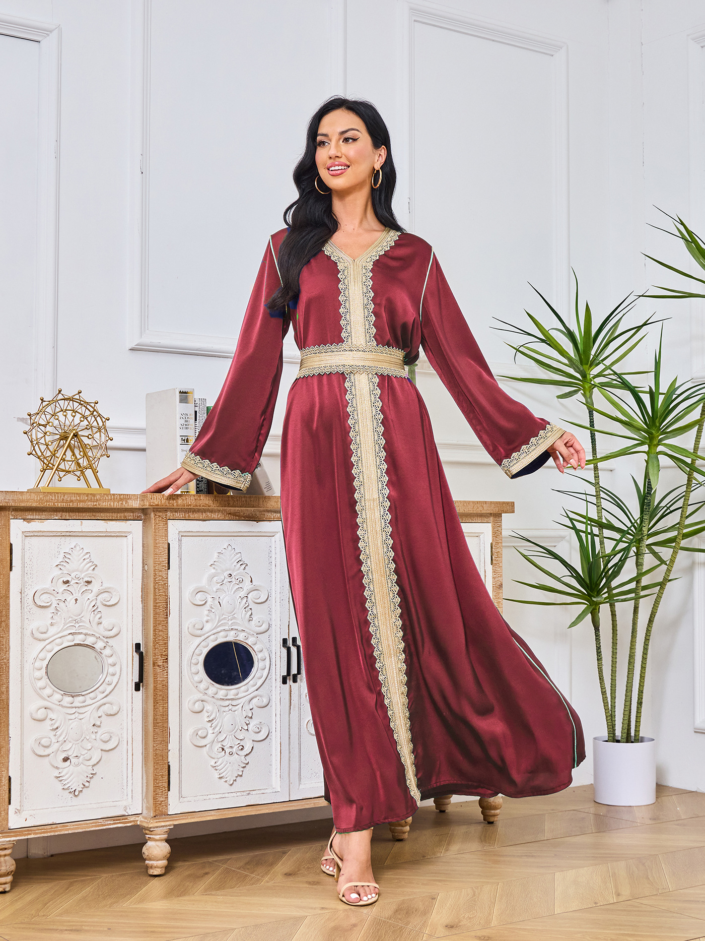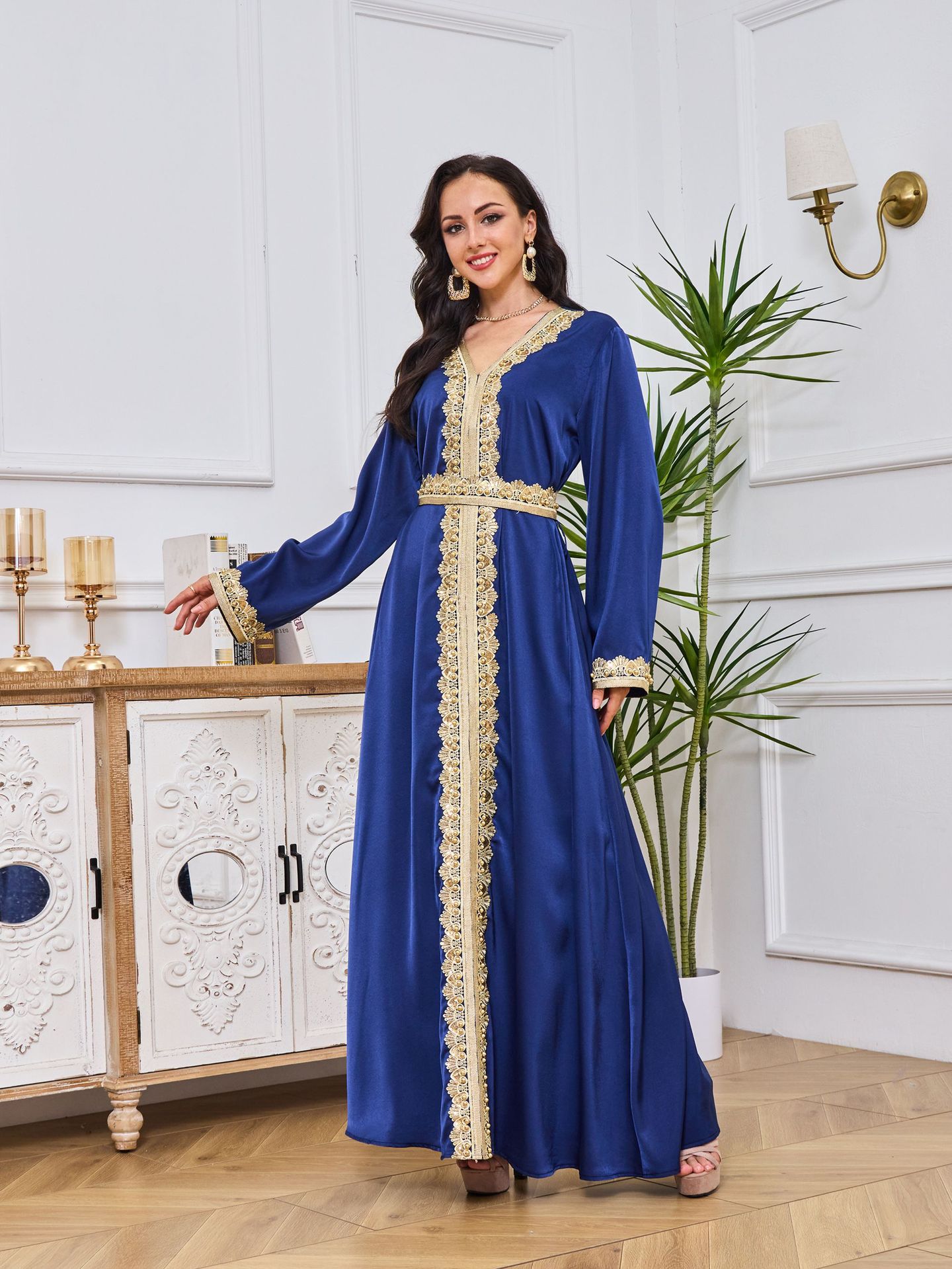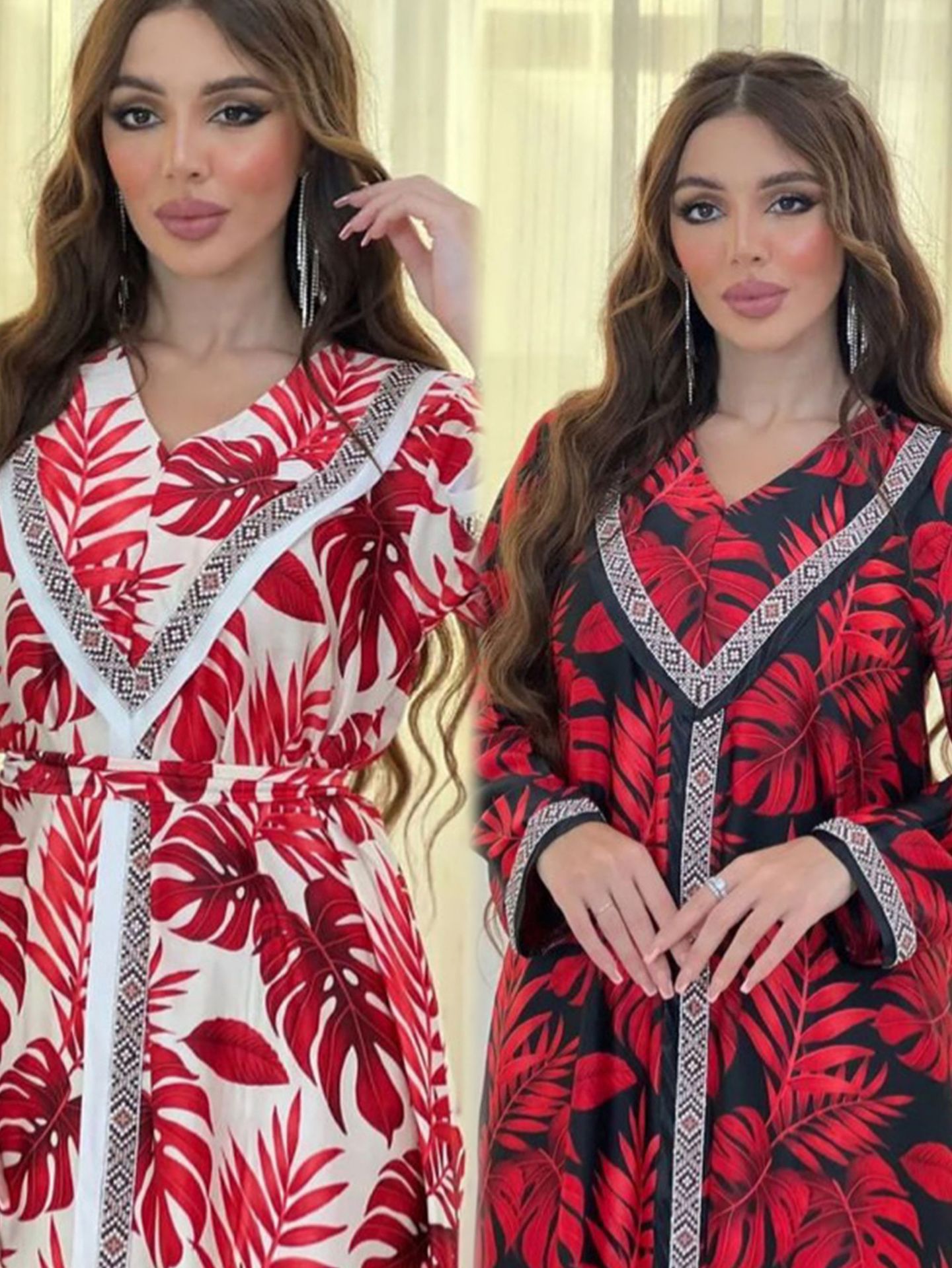 Robe Abaya de Dubaï avec Pierres Chaudes Imprimées et Détails Brodés