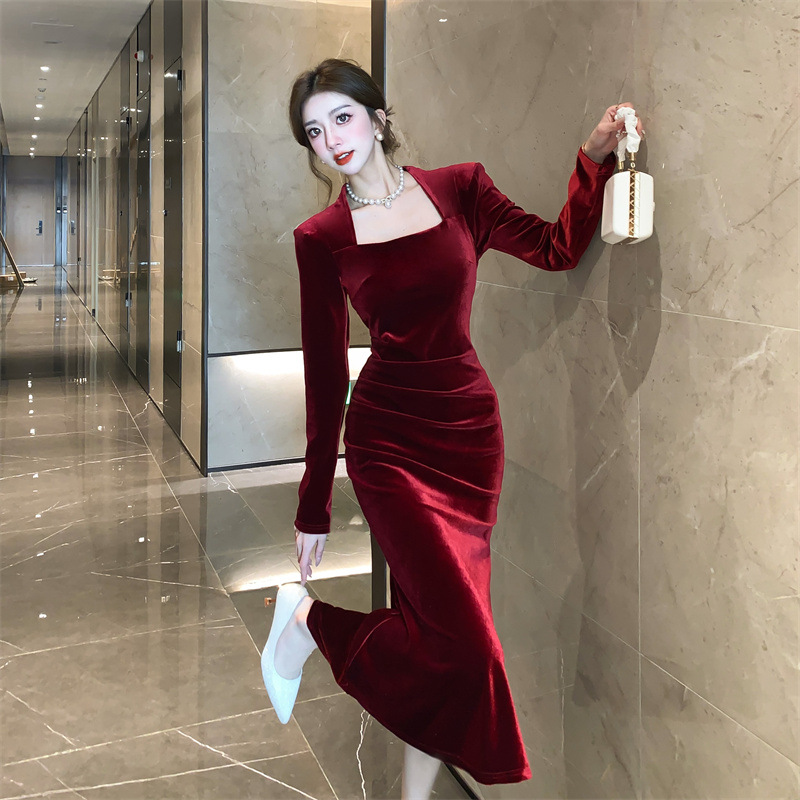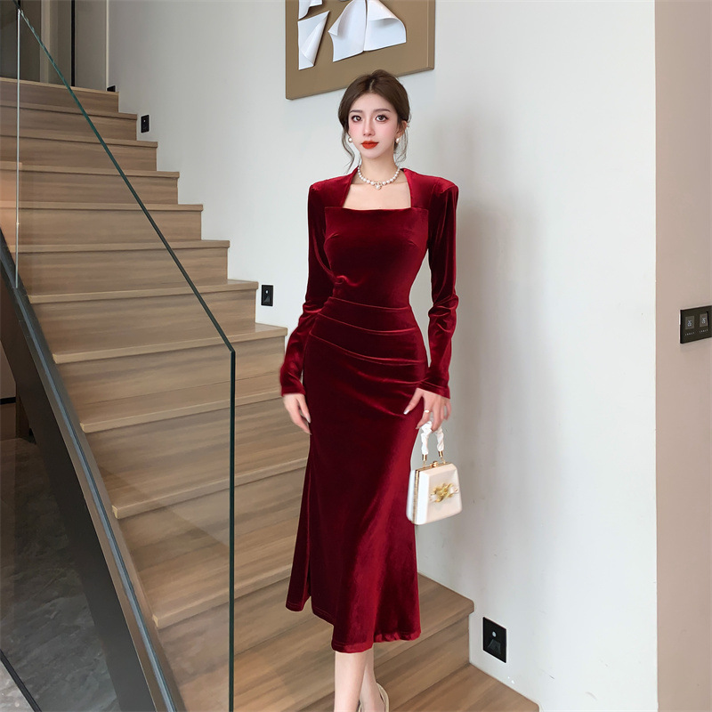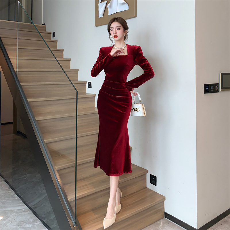 Women's Fashion Velvet Sheath Long Dress
